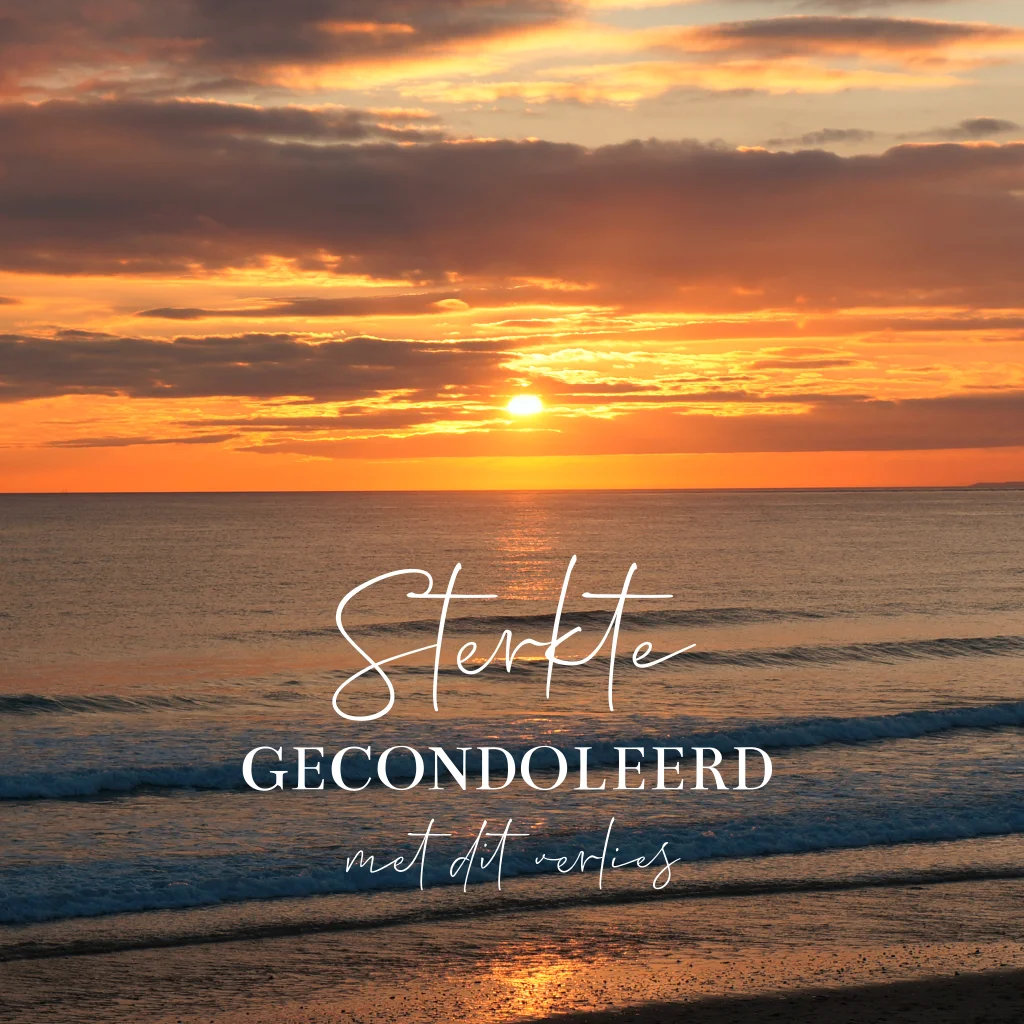 Condoleancekaart met mooie zonsondergang aan de horizon met zee en strand.