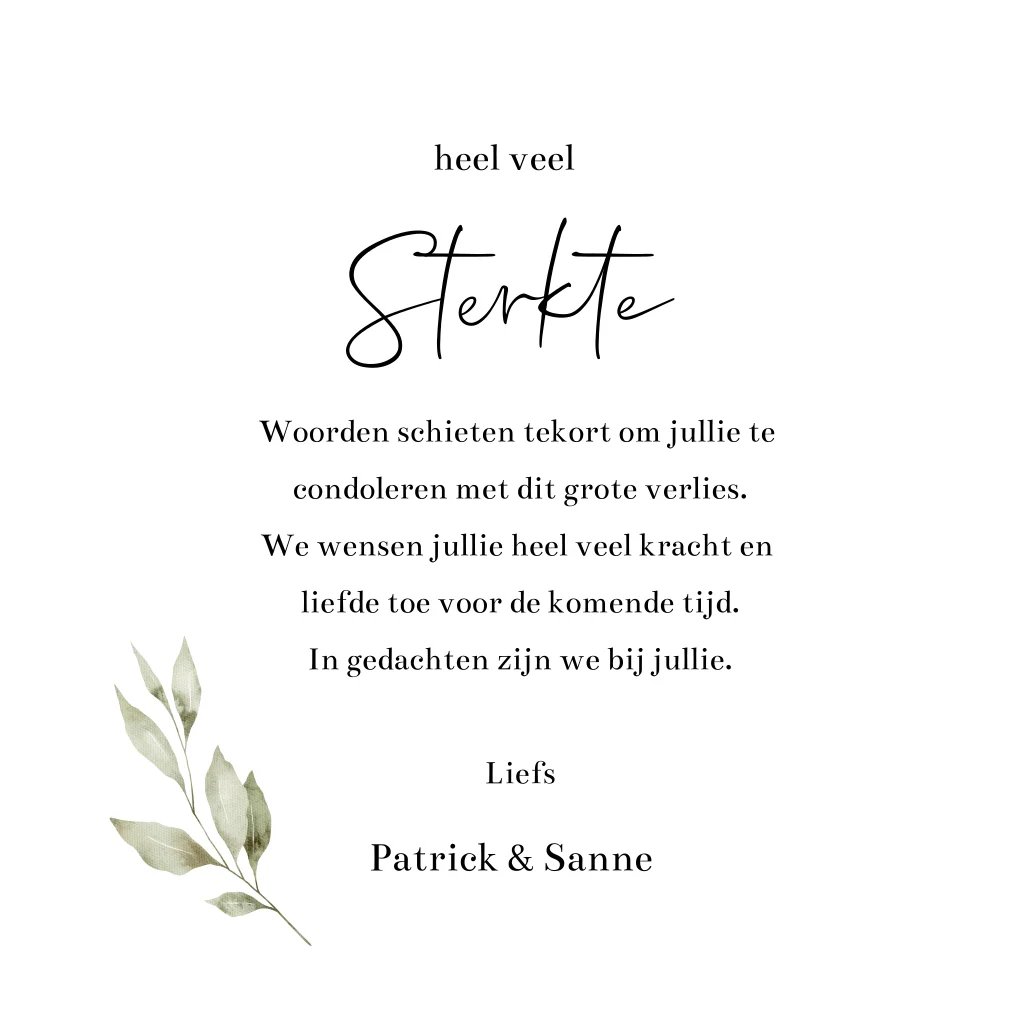 Stuur een mooie condoleancekaart met persoonlijke tekst om iemand sterkte te wensen in een tijd van rouw.