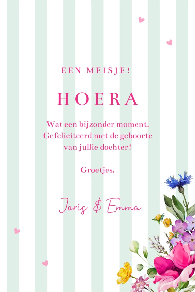 Hoera, een baby geboren! Verstuur online een mooie wenskaart om de kersverse ouders te feliciteren. Leuke originele felicitatie kaarten geboorte meisje of jongen.