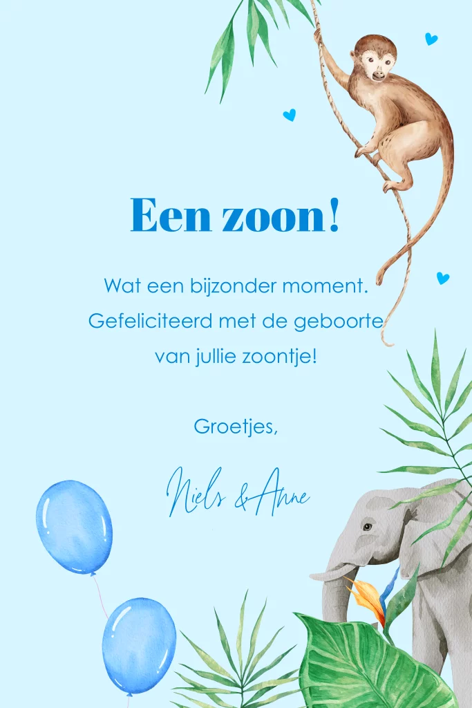 Felicitatie kaart geboorte zoon baby jongen met leeuwtje. Welcome little boy!