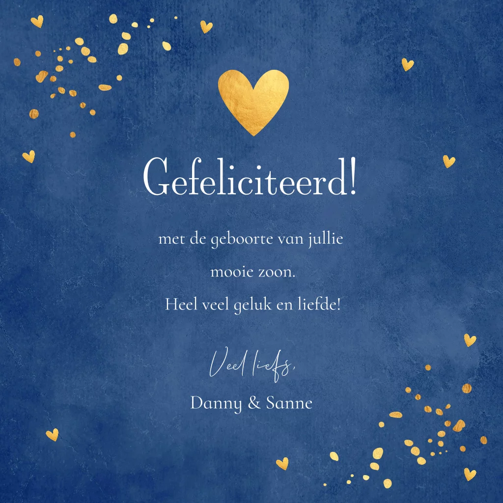 Felicitatie geboorte zoon baby jongen blauw goudlook hartje