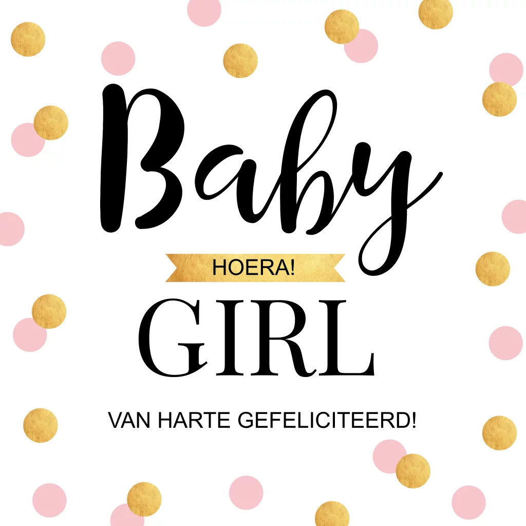 Felicitatie kaart geboorte dochter baby meisje met roze dots confetti en goudlook. Geen goudfolie/inkt!