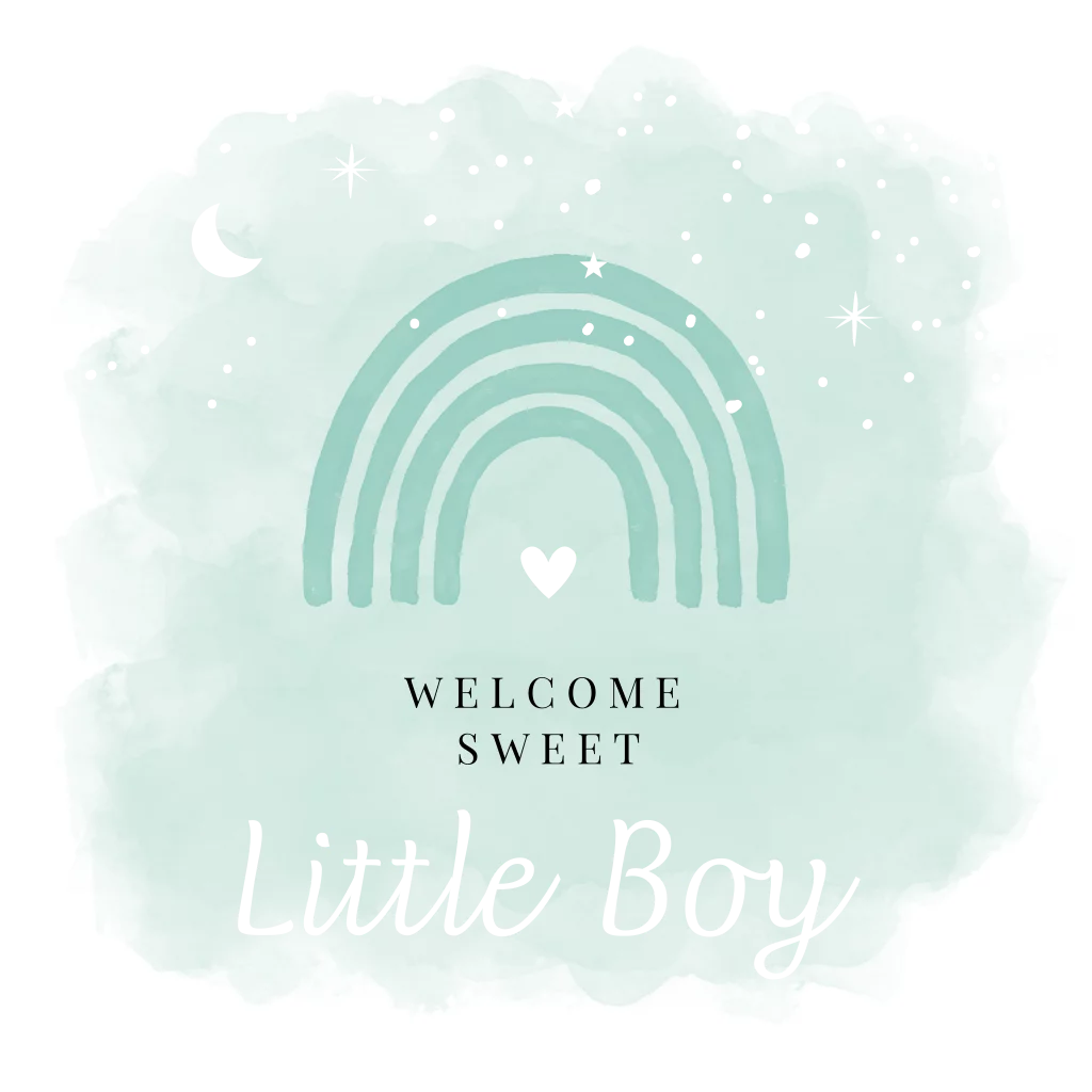Felicitatie geboorte zoon baby jongen regenboog mintgroen goudfolie