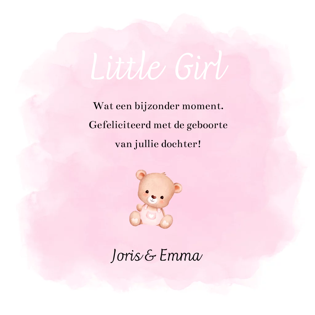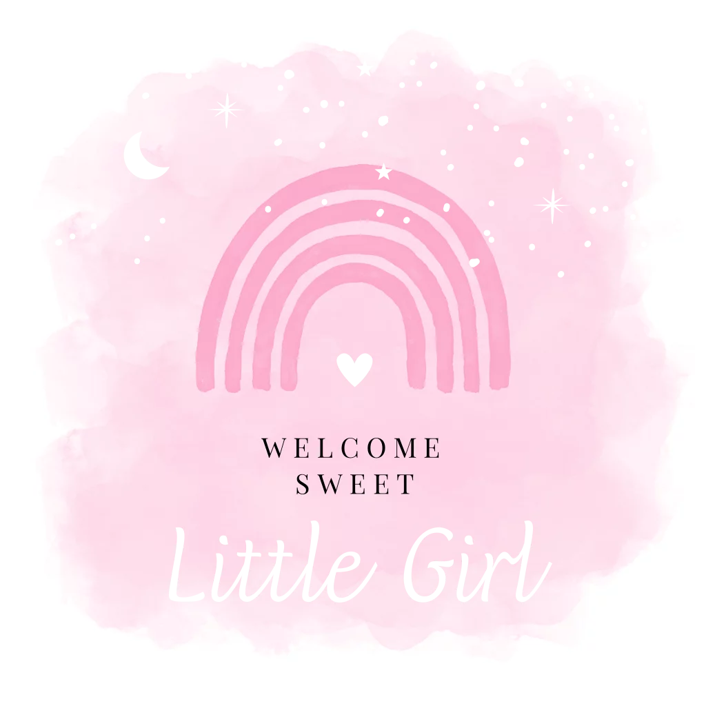 Felicitatie geboorte dochter baby meisje met roze watercolour, regenboog en goudfolie.