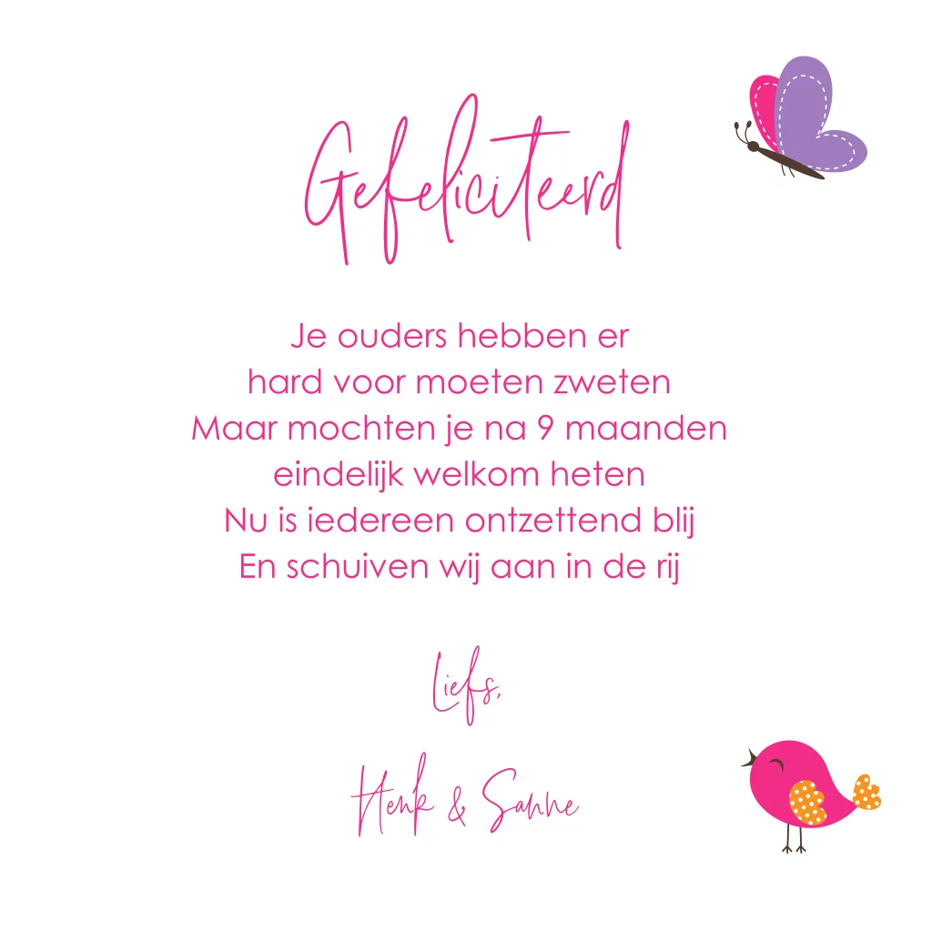 Hoera, een baby geboren! Verstuur online een mooie wenskaart om de kersverse ouders te feliciteren. Leuke originele felicitatie kaarten geboorte meisje of jongen.