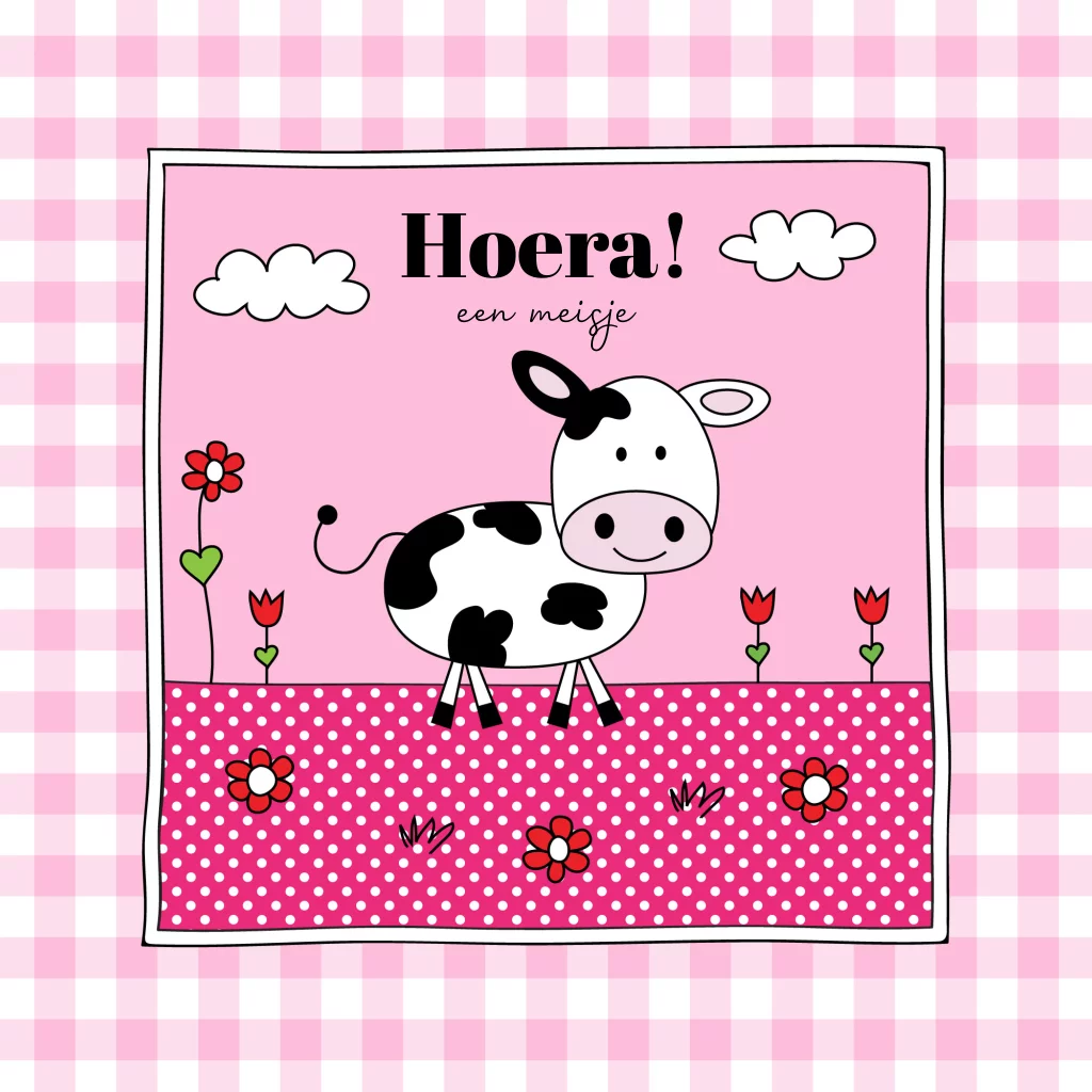 Felicitatie kaart geboorte dochter baby koe weiland dieren