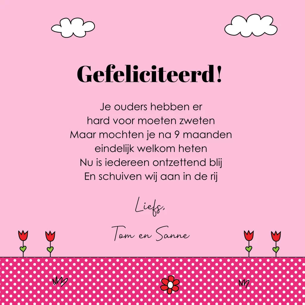 Hoera, een baby geboren! Verstuur online een mooie wenskaart om de kersverse ouders te feliciteren. Leuke originele felicitatie kaarten geboorte meisje of jongen.
