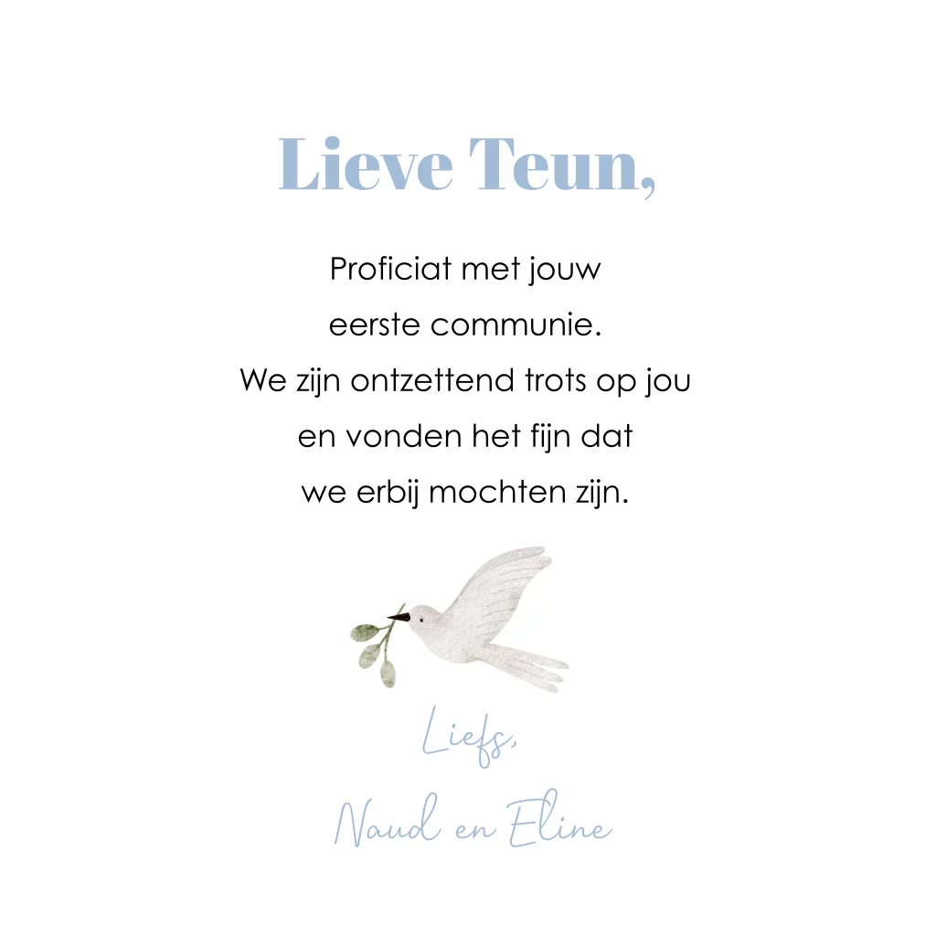 De eerste communie, lentefeest of vormsel is een heel bijzonder moment en zeker een felicitatiekaart waard. Stuur daarom een felicitatiekaartje naar degene die communie heeft gedaan, dat is superleuk!
