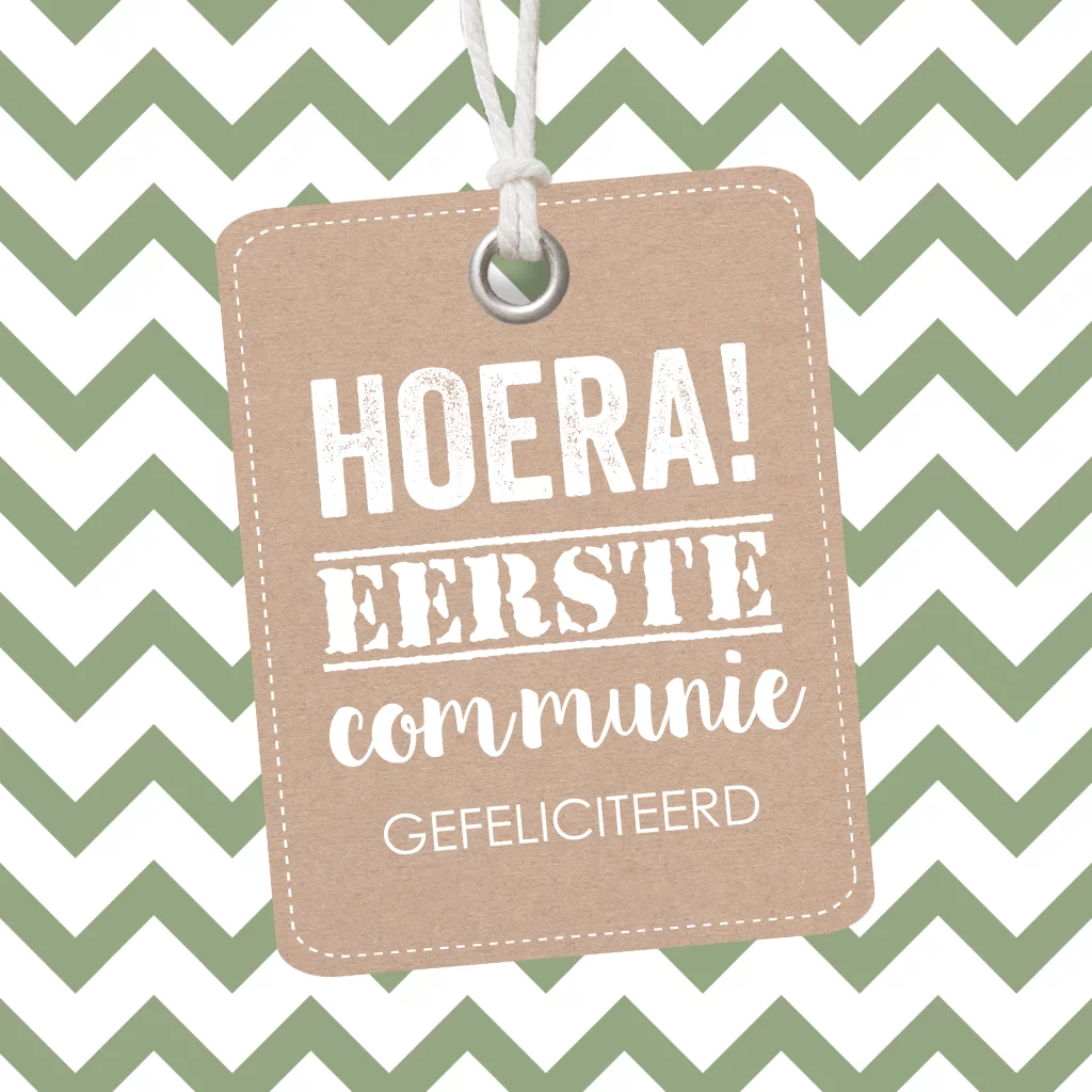 Felicitatie eerste communie kaart jongen zigzag print groen