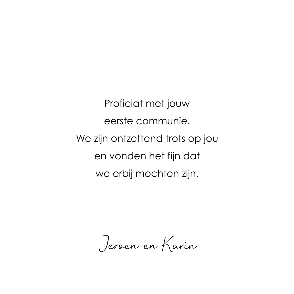 De eerste communie, lentefeest of vormsel is een heel bijzonder moment en zeker een felicitatiekaart waard. Stuur daarom een felicitatiekaartje naar degene die communie heeft gedaan, dat is superleuk!