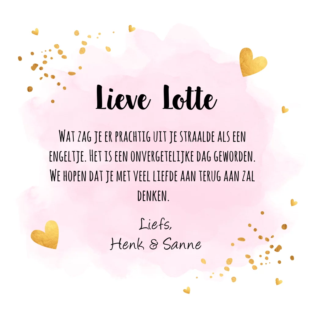 Felicitatie eerste communie kaart voor een meisje met dieren pinguïn, watercolour roze en goudlook hartjes. Geen folie!