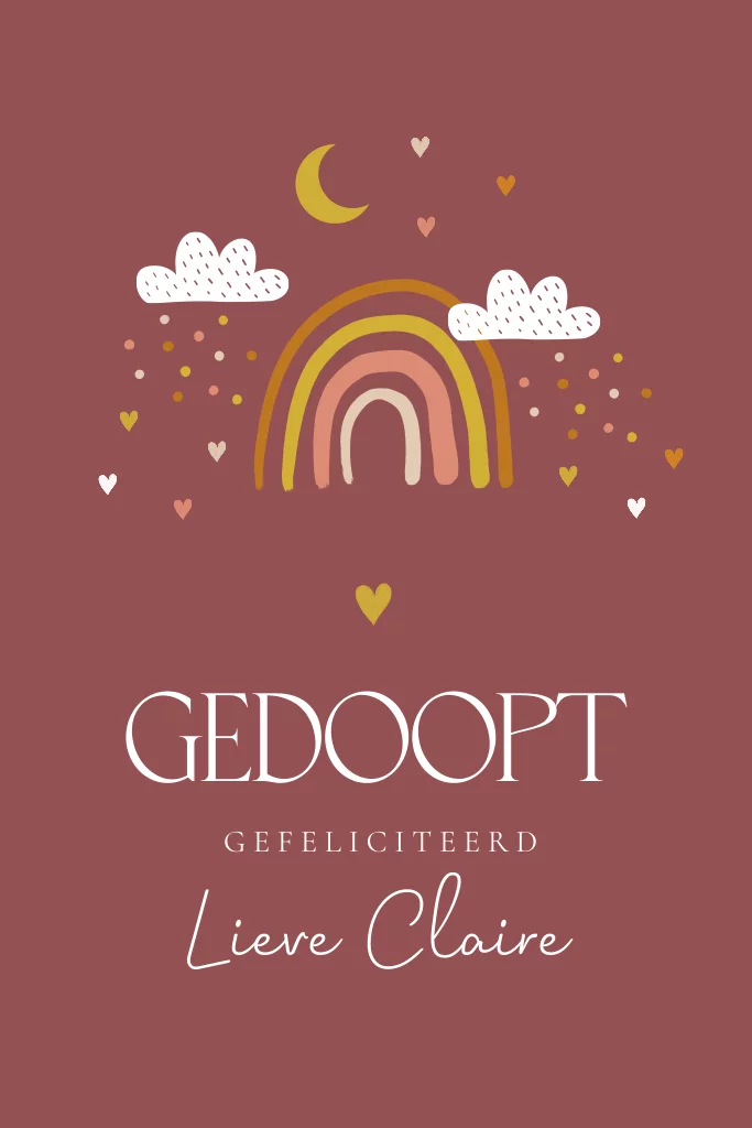 Felicitatie doop meisje regenboog wolkjes hartjes