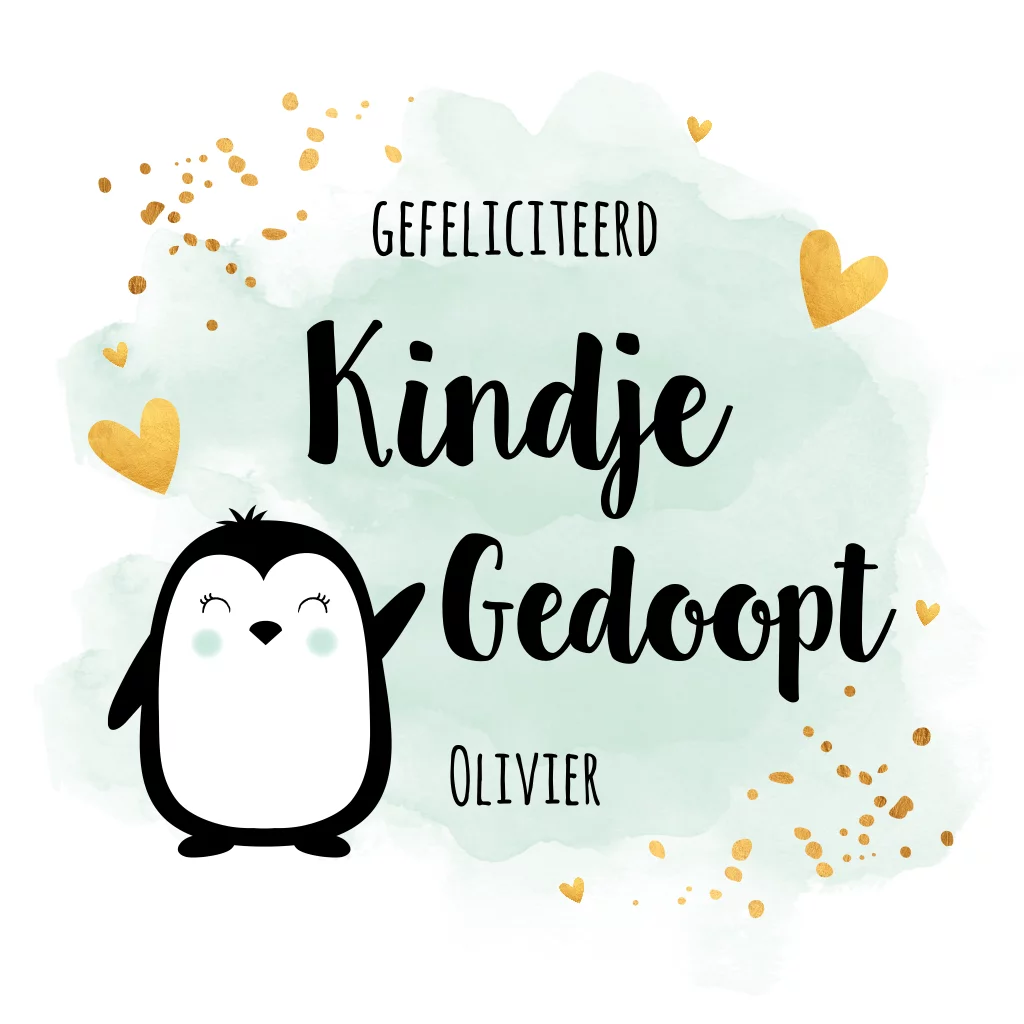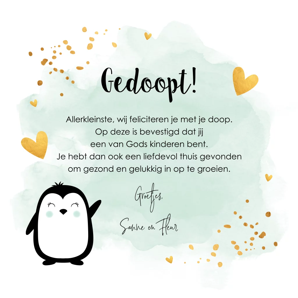 Felicitatie kaart doop jongen dieren pinguïn waterverf groen
