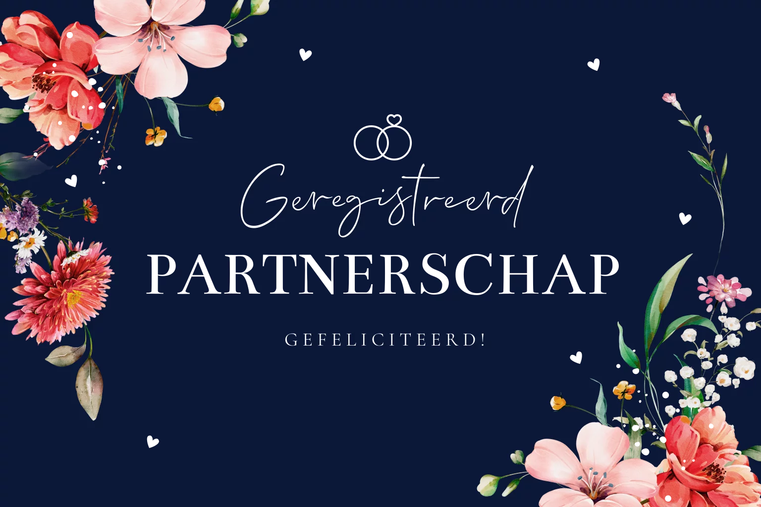Felicitatie geregistreerd partnerschap kaart bloemen goudfolie