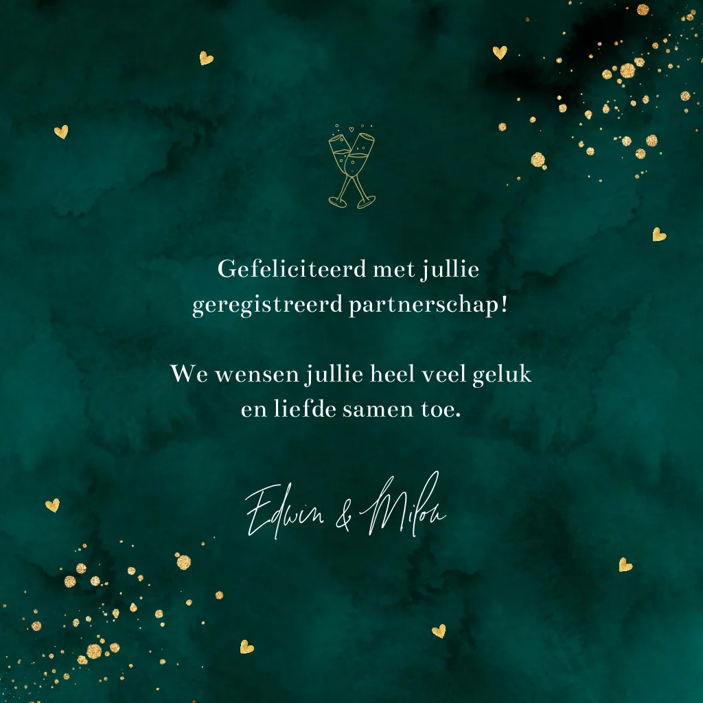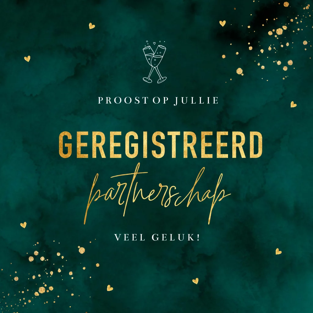 Felicitatie geregistreerd partnerschap kaart groen goudlook