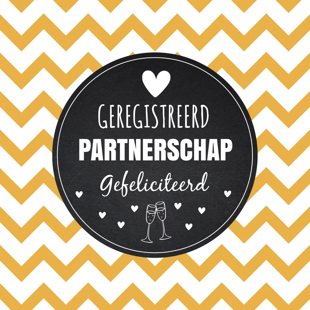 Leuke felicitatie geregistreerd partnerschap kaart met geel zigzag print.