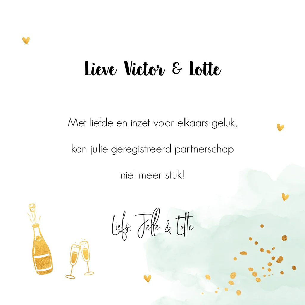 Felicitatie geregistreerd partnerschap kaart groen goudlook hartjes
