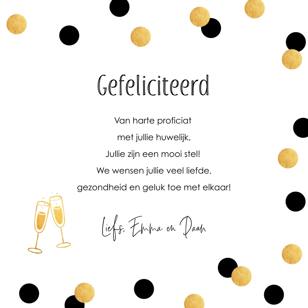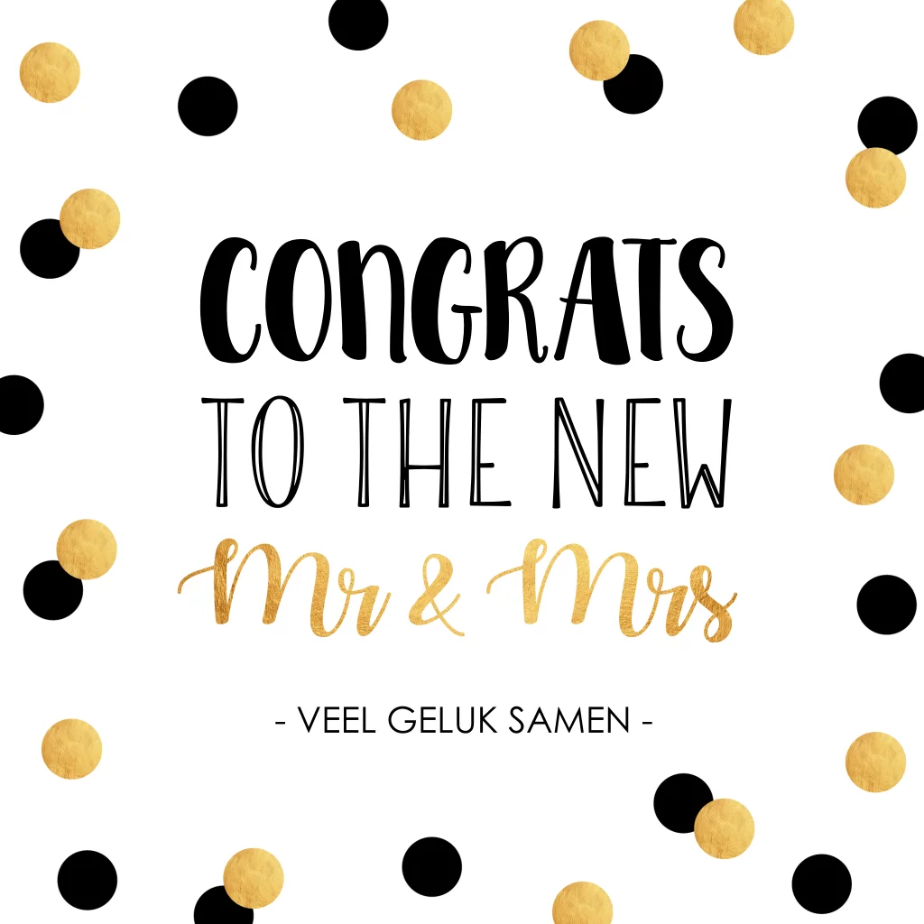 Felicitatie huwelijk pas getrouwd kaart goudlook typografie