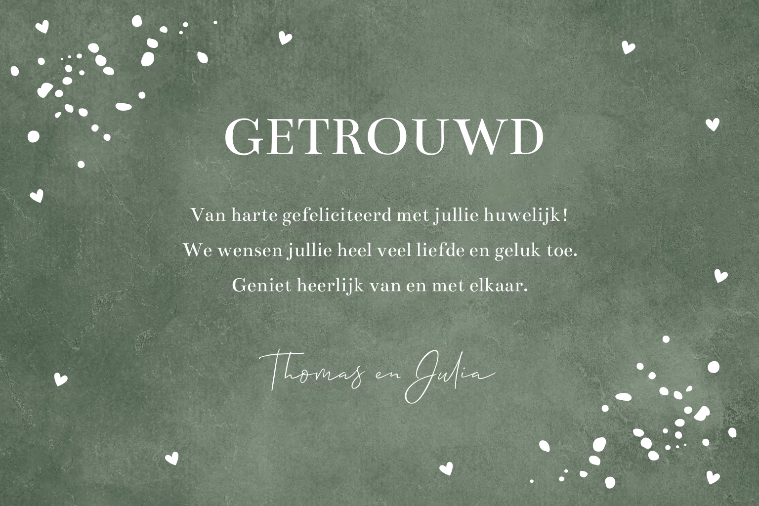 Felicitatie pas getrouwd huwelijk kaart groen goudfolie proost