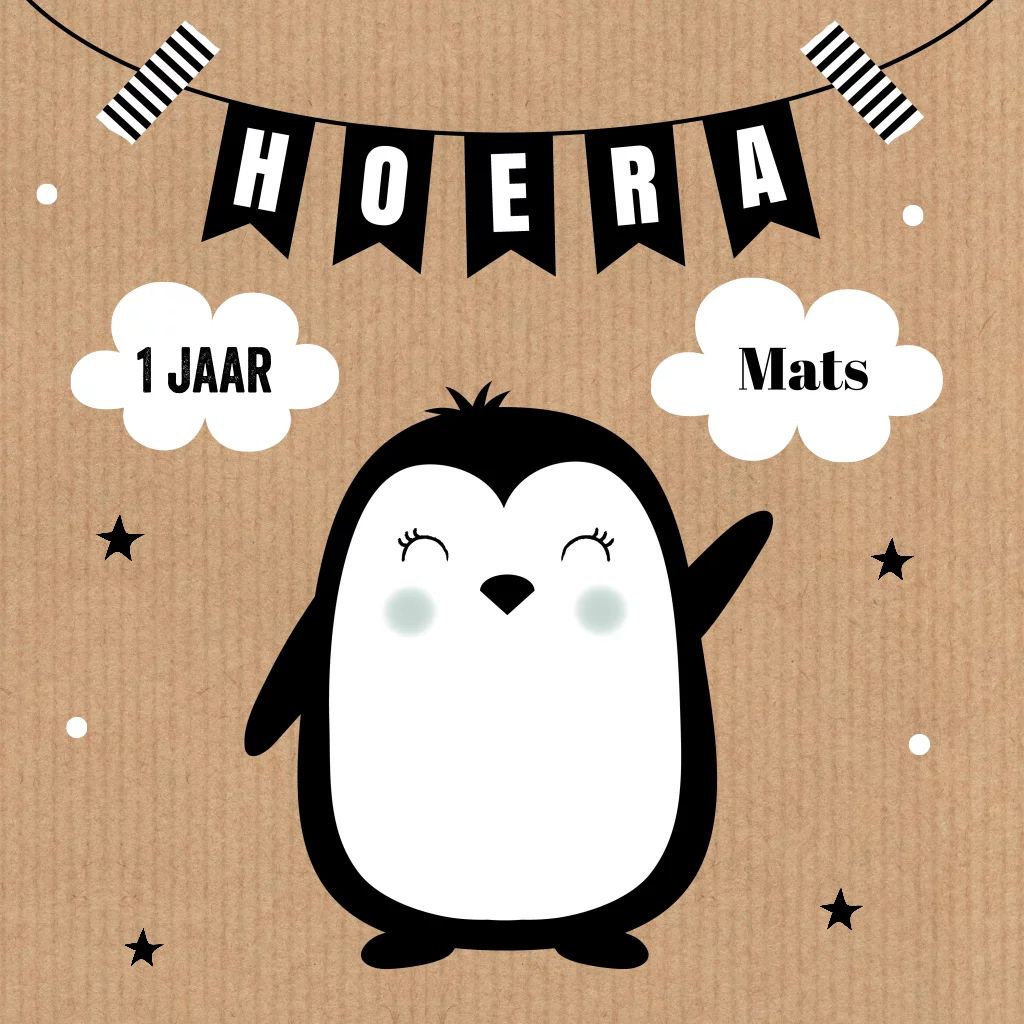 Verjaardagskaart kind 1 jaar dieren pinguin slinger kraftlook