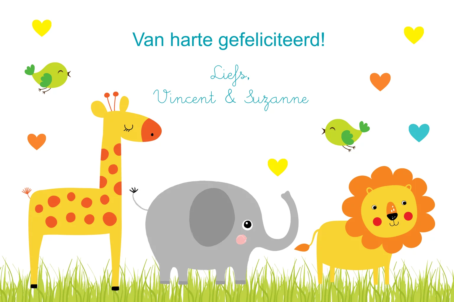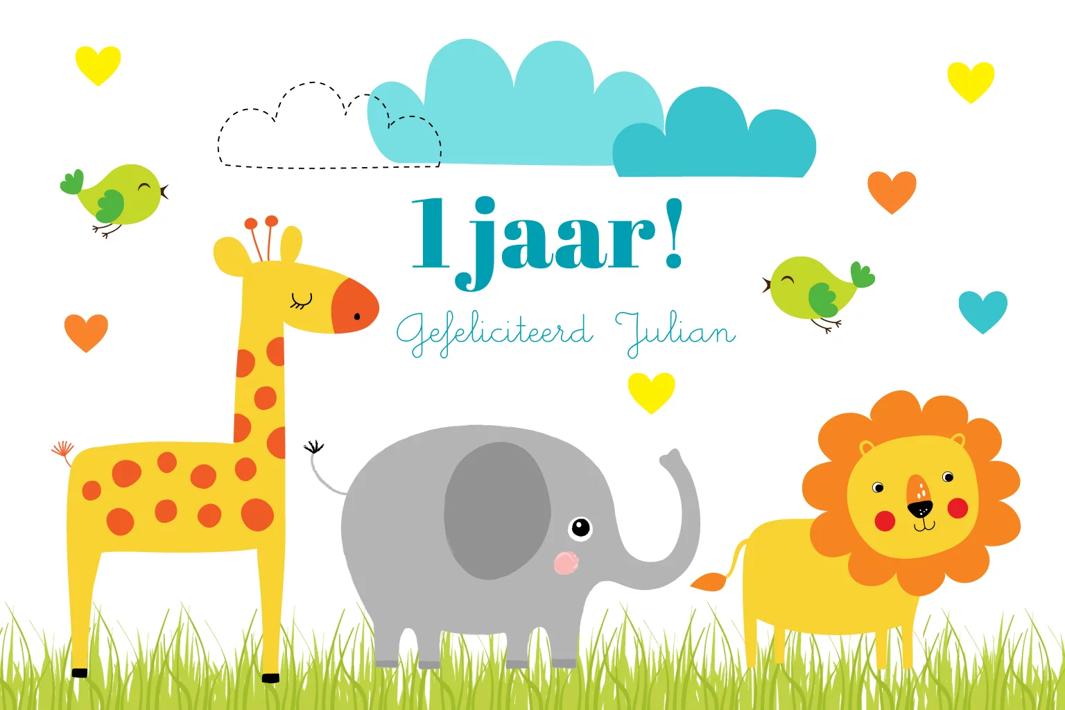 Verjaardagskaart kind 1 jaar jungle safari dieren