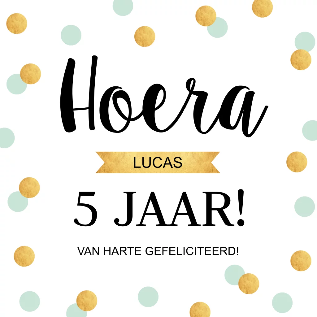 Verjaardagskaart kind jongen mintgroen goudlook typografie
