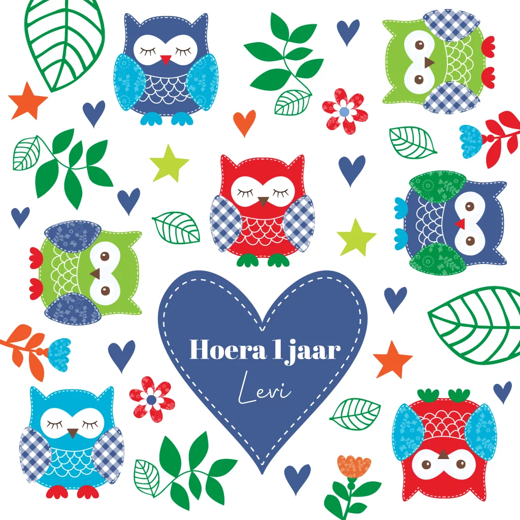 Verjaardagskaart kind 1 jaar jongen uiltjes blauw