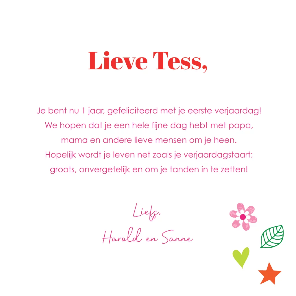 Verjaardagskaart kind 1 jaar meisje roze uiltjes