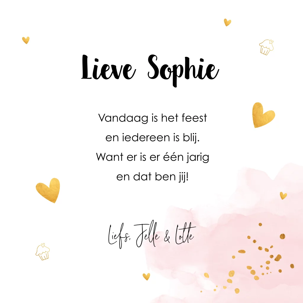 Verjaardagskaart kind meisje roze watercolour goudlook