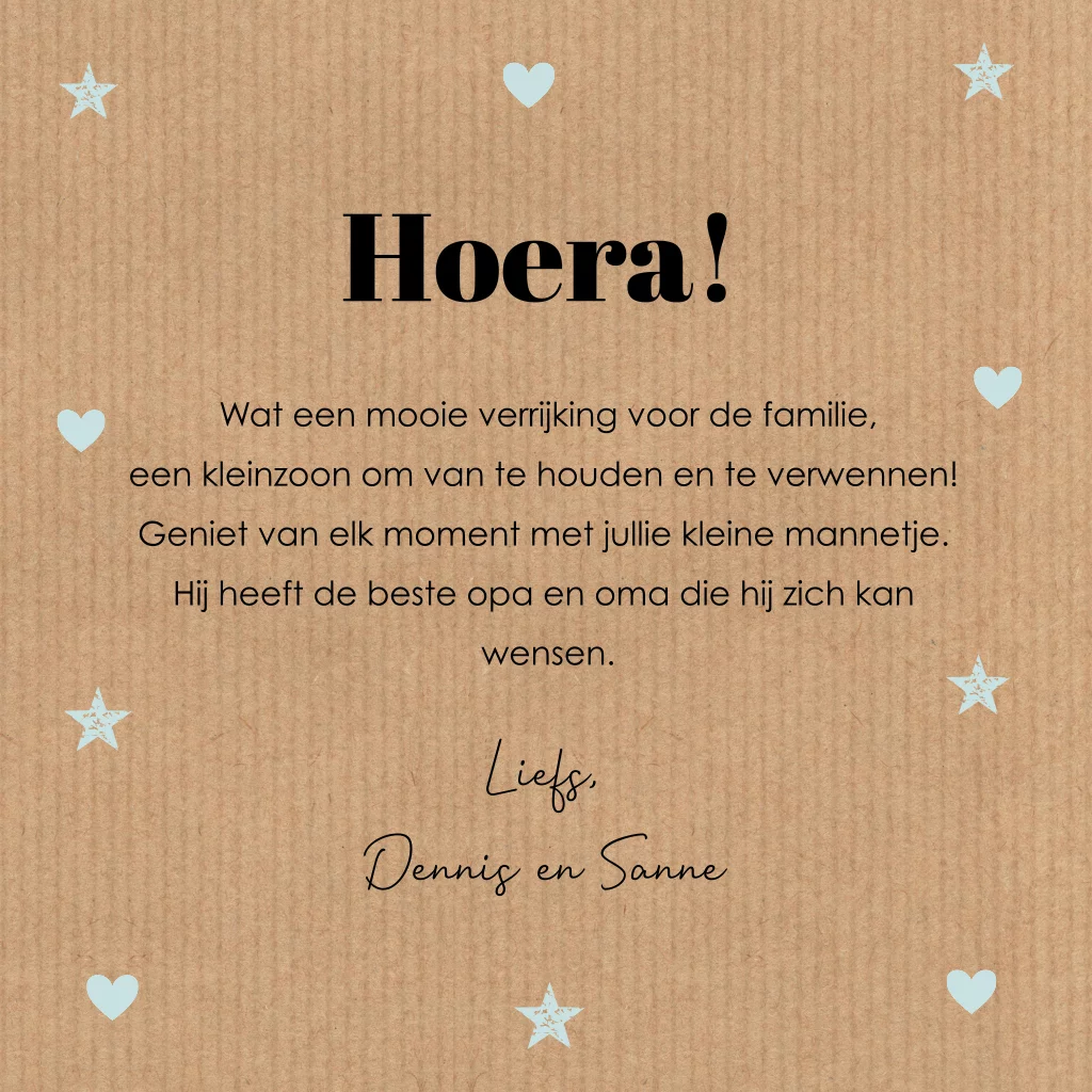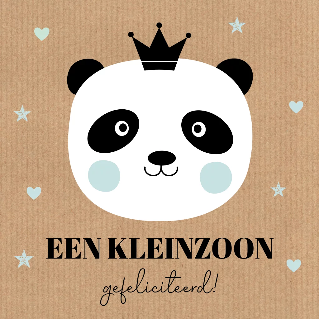 Felicitatie kaart kleinzoon met illustratie pandabeer, sterren mintgroen en kraftlook. Maak een mooie kaart online om opa en oma te feliciteren met hun kleinkind.