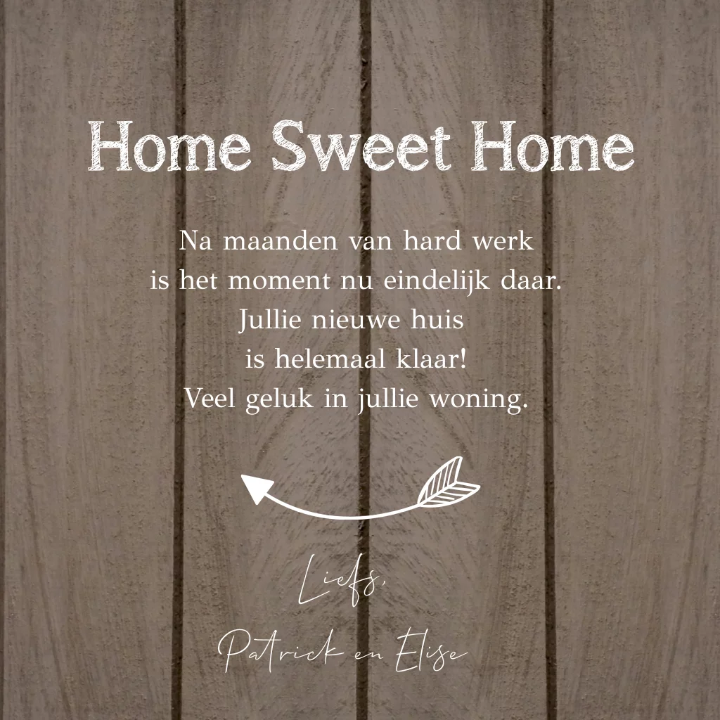 Felicitatie kaart nieuwe woning houtlook hartje huisjes