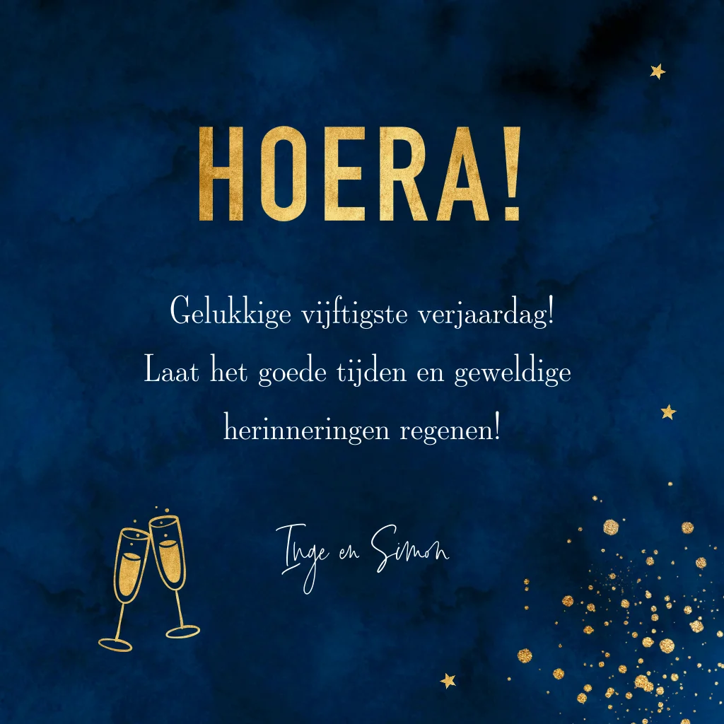 Verjaardagskaart blauw 50 jaar man spetters goudlook