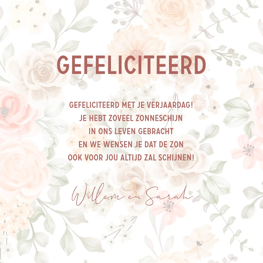 Verjaardagskaart vrouw roze bloemen rosegoudfolie