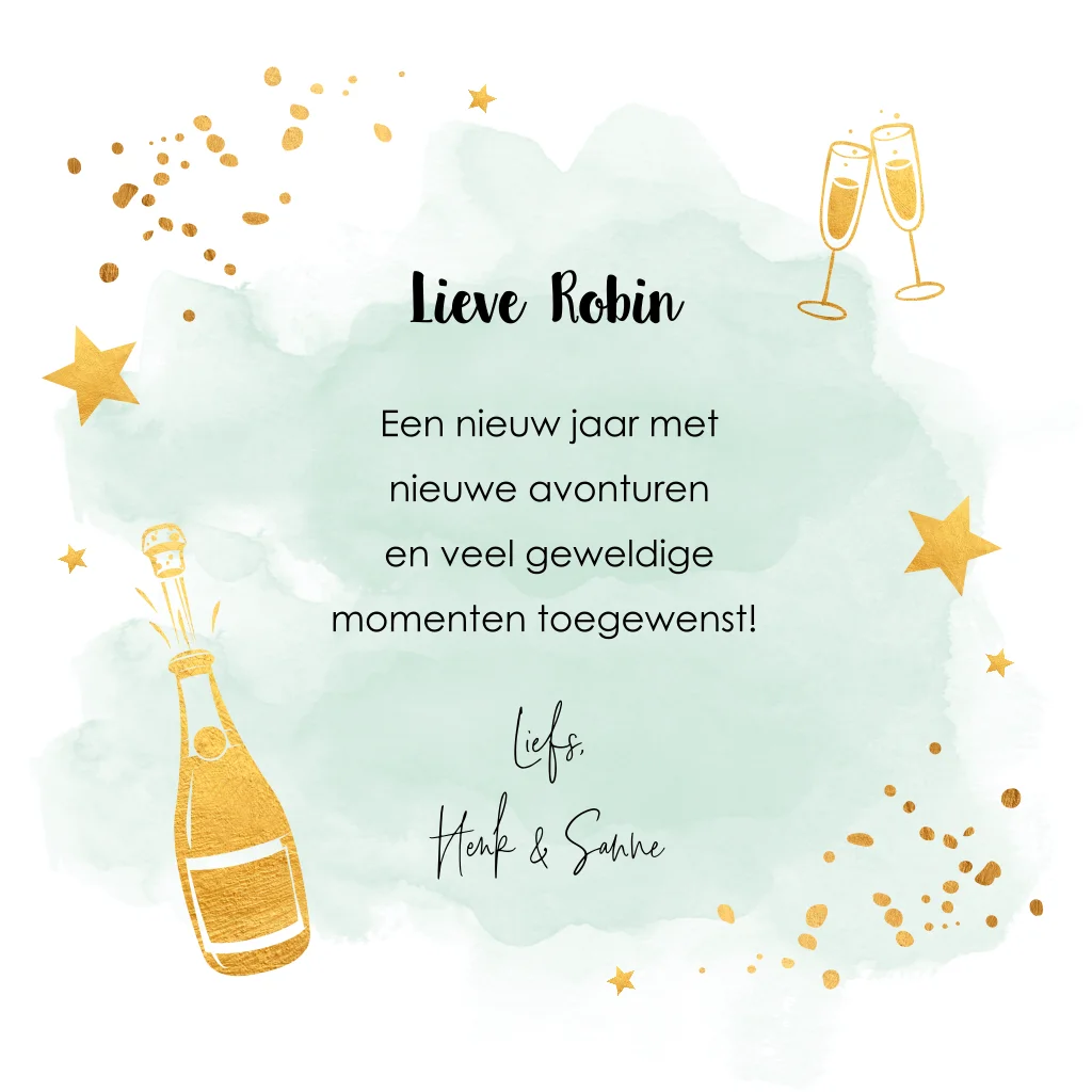Verjaardagskaart waterverf groen champagne goudlook
