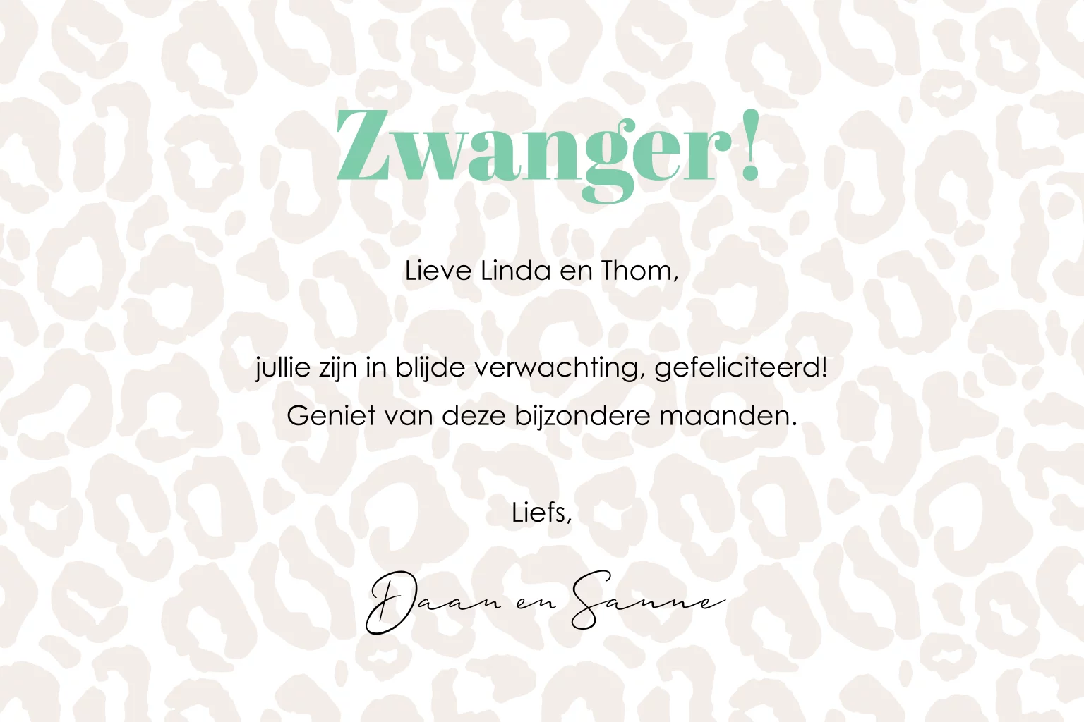 Felicitatie kaart zwangerschap panterprint beige hoogglans