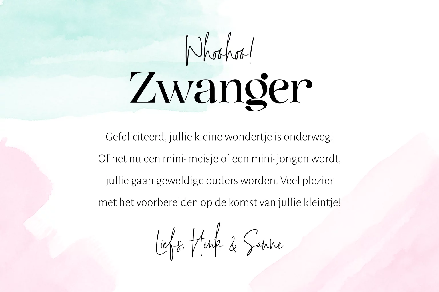 Felicitatie kaart zwangerschap waterverf roze groen goudfolie