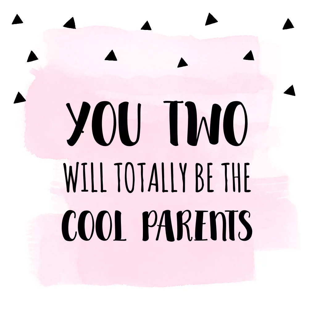 Felicitatie zwangerschap typografie en roze waterverf. You two will totally be the cool parents!