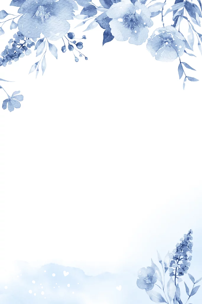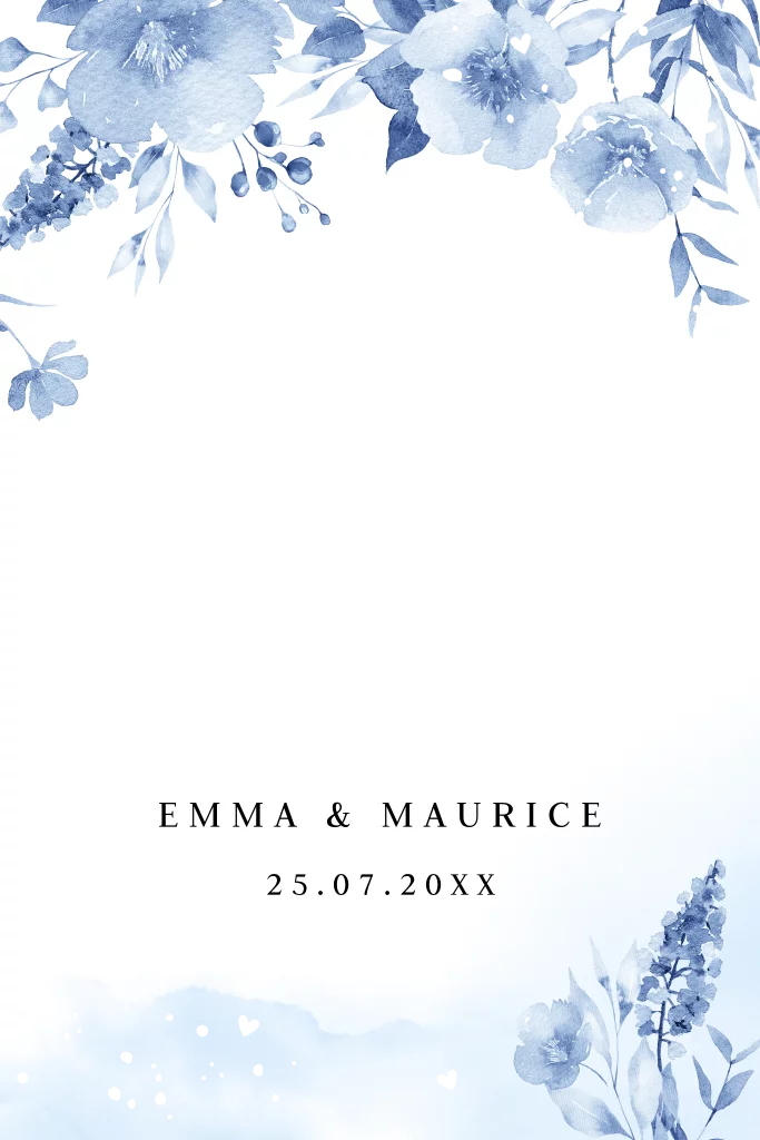 Geloftenkaart met bloemen blauw watercolour en goudfolie. In een handige gelofteboekje kun je jullie geloften opschrijven. Zo vergeet je niet wat je wilde zeggen.