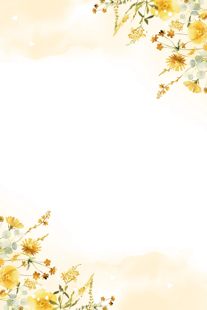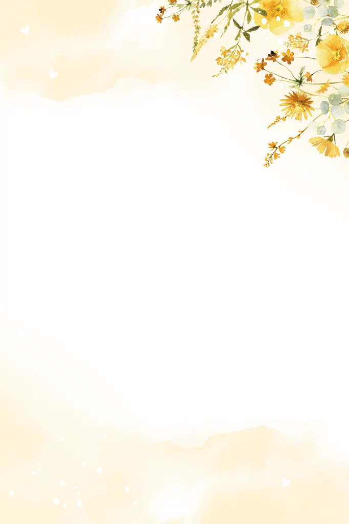 Geloftenkaart met bloemen watercolour geel en goudfolie. In een handige gelofteboekje kun je jullie geloften opschrijven. Zo vergeet je niet wat je wilde zeggen.