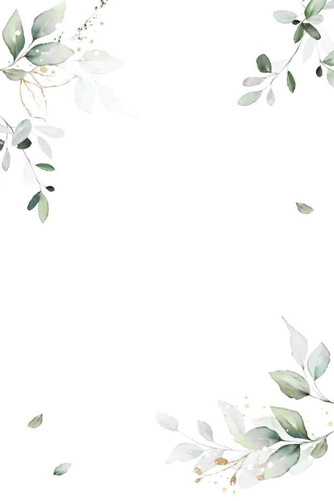 Geloftenkaart met groene bladeren en rosegoudfolie. In een handige gelofteboekje kun je jullie geloften opschrijven. Zo vergeet je niet wat je wilde zeggen.