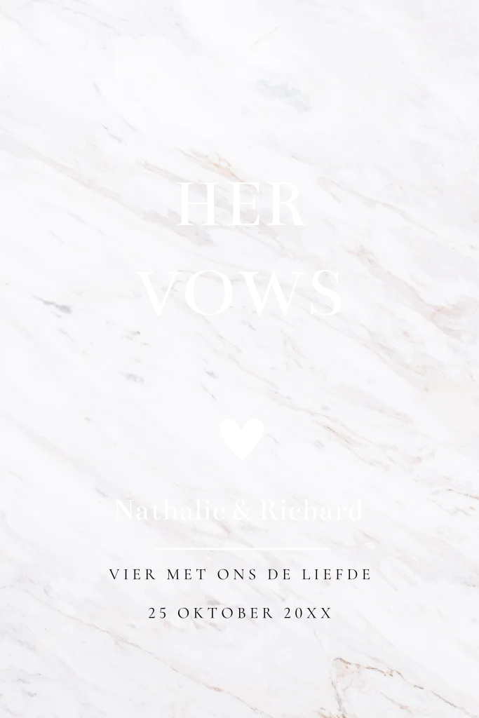 Stijlvolle geloftenkaart met marmerlook en goudfolie. In een handige gelofteboekje kun je jullie geloften opschrijven. Zo vergeet je niet wat je wilde zeggen.