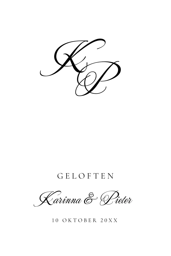 Geloftenkaart zwart wit sierlijke initialen naam. Schrijf je geloften in een mooie kaart!