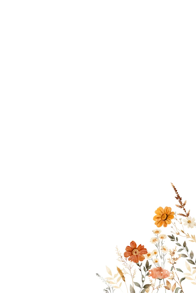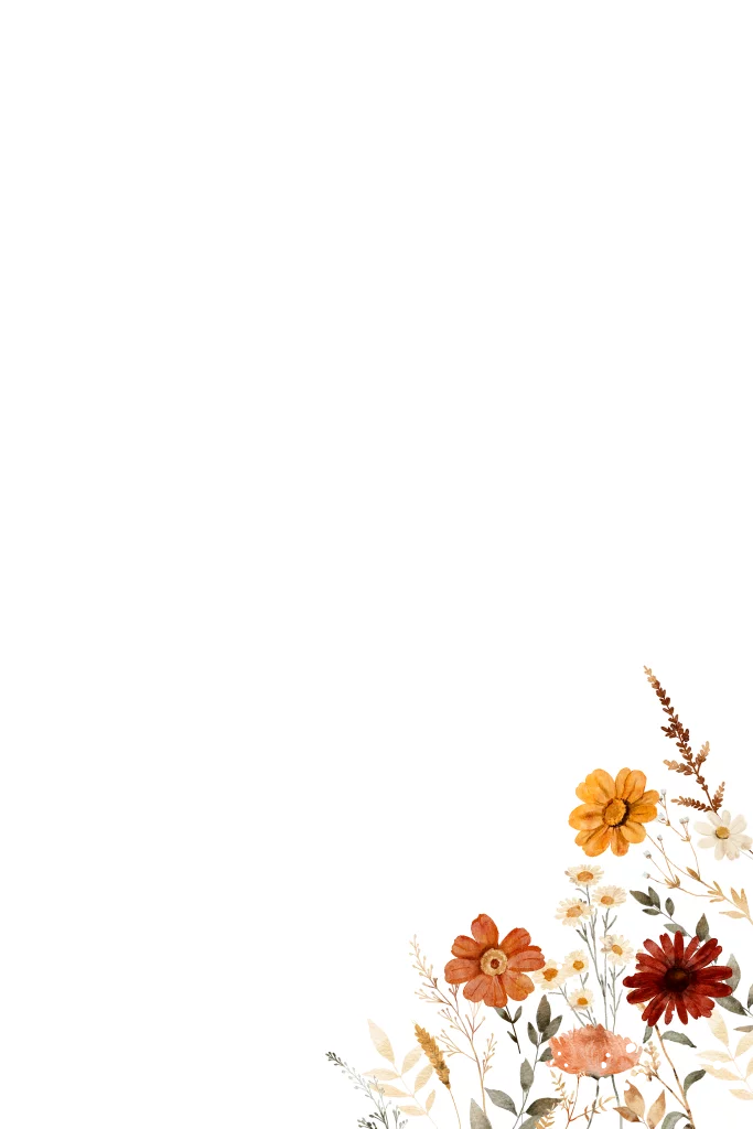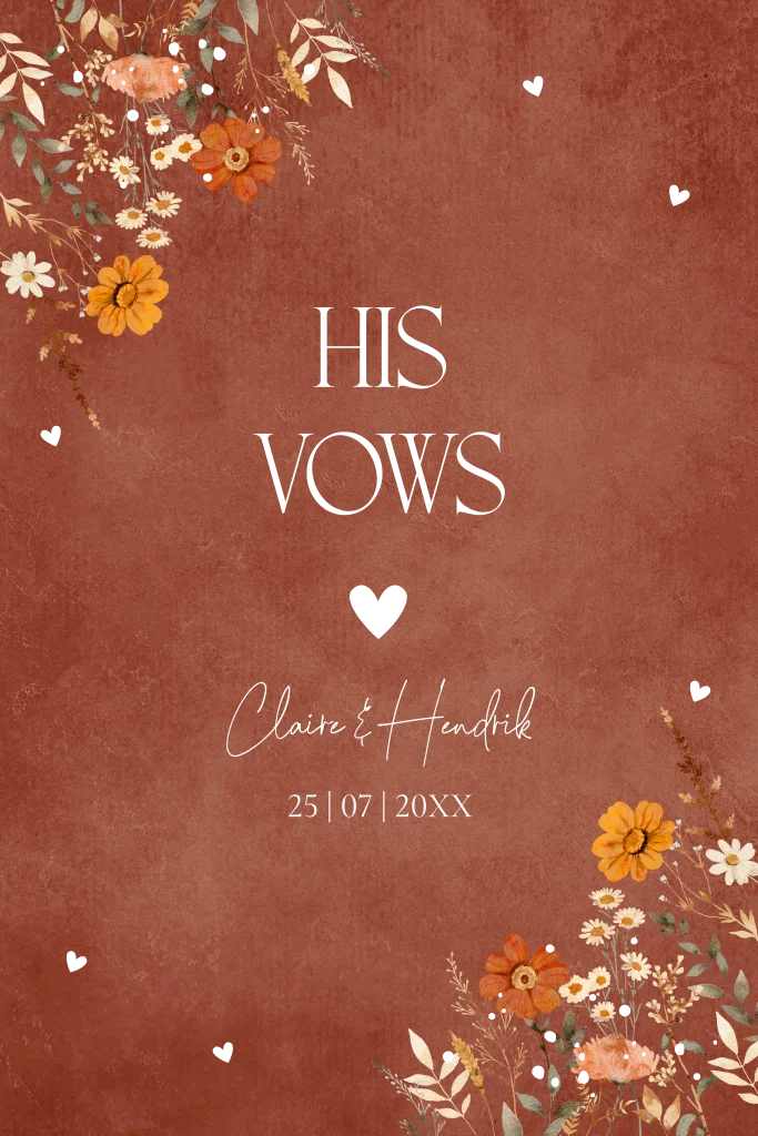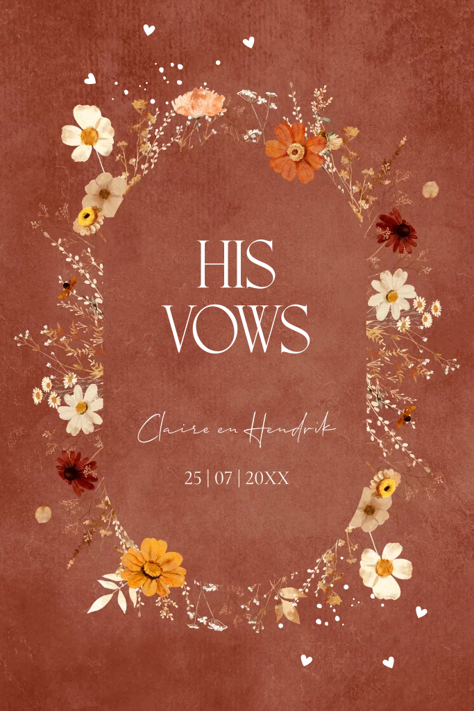 Geloftenboekje met aquarel bloemen in herfst kleuren bruin rood en goudfolie. Schrijf je geloften in een mooie kaart!