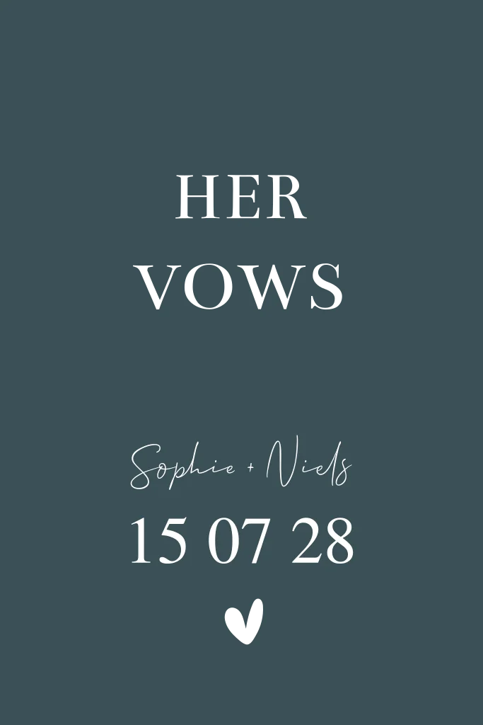 Stijlvolle geloftenkaart met denim blauw en goudfolie. In een handige gelofteboekje kun je jullie geloften opschrijven. Zo vergeet je niet wat je wilde zeggen.