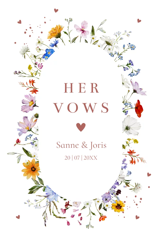 Geloftenboekje met watercolour zomerse bloemen. Schrijf je geloften in een mooie kaart!
