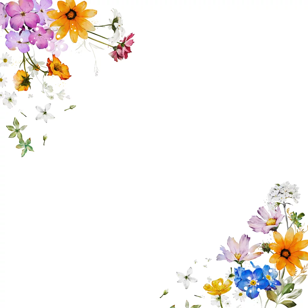 Getuigekaart wit met kleurrijke watercolour veldbloemen. In de binnenkant kan je een foto toevoegen.