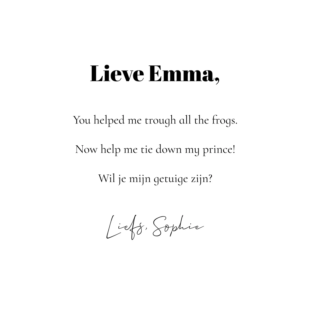 Op zoek naar een leuke speciale manier om je getuige te vragen? Kies voor een grappige of stijlvolle kaart uit de collectie van Lillybird om jouw vriend, vriendin of familie als getuige te vragen!