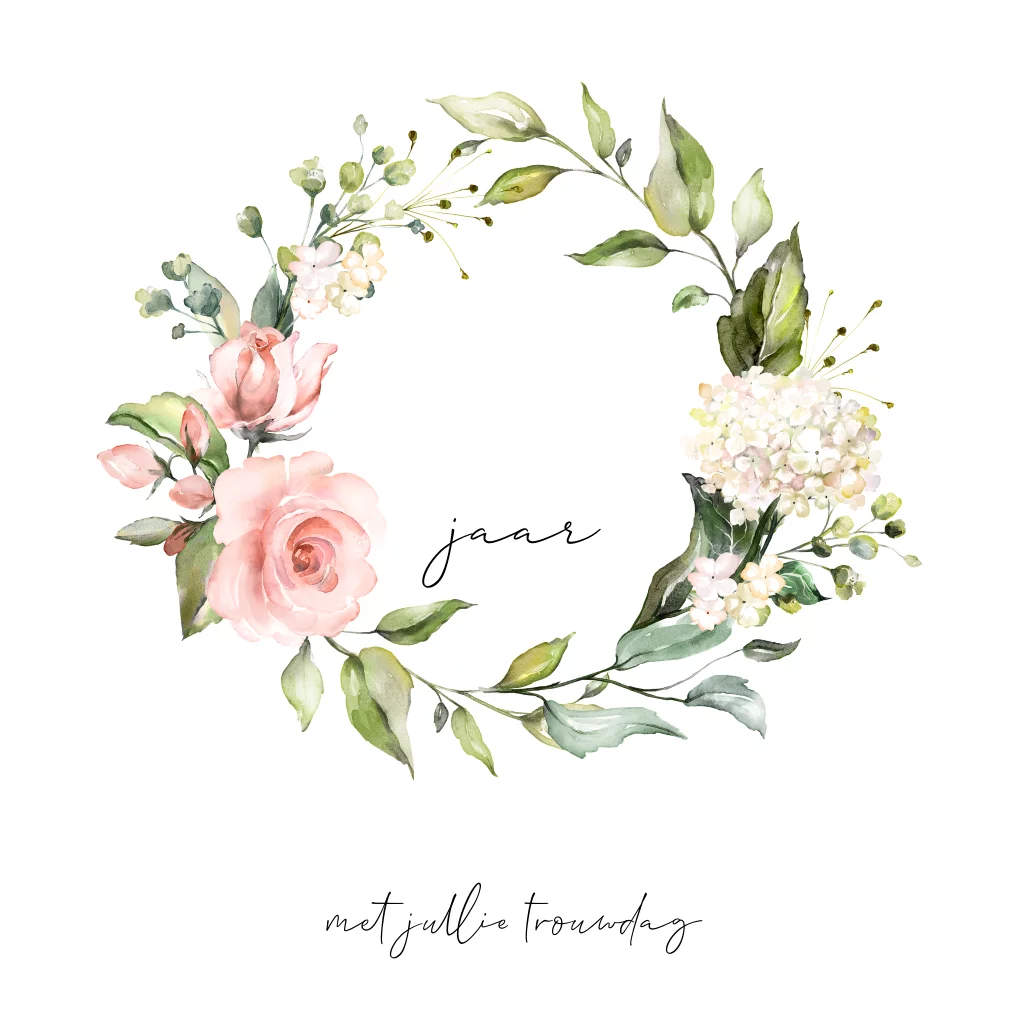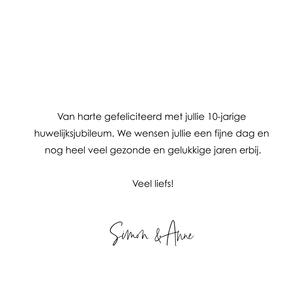 Felicitatie huwelijks jubileum 10 jaar getrouwd bloemenkrans goudfolie