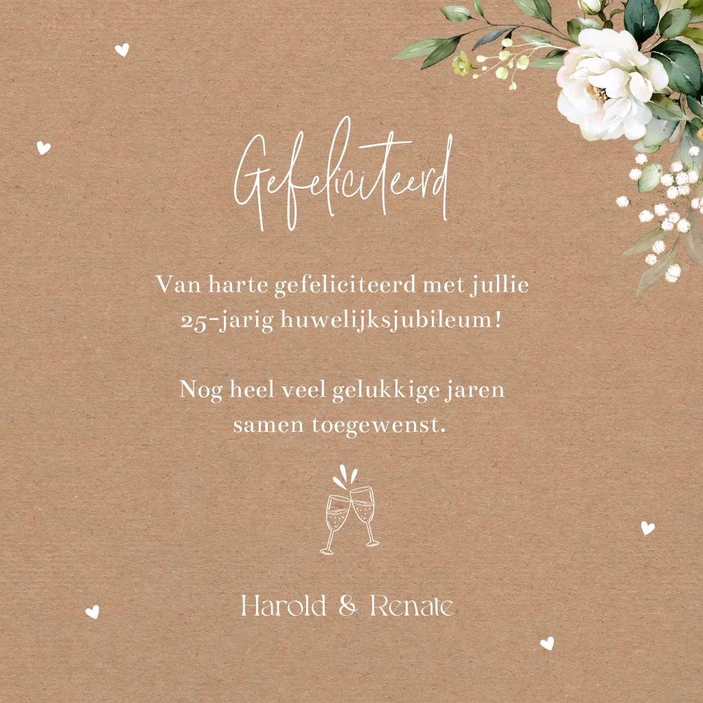 Felicitatie huwelijksjubileum 25 jaar getrouwd bloemen kraftlook