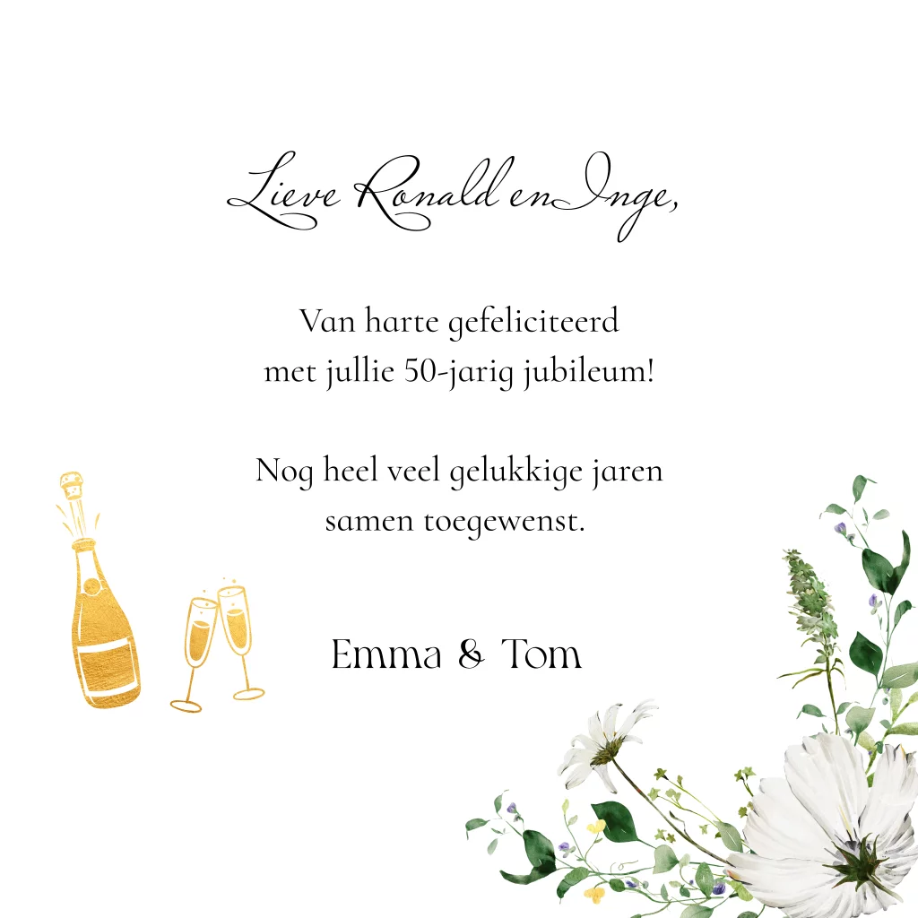 Felicitatie huwelijksjubileum 50 jaar getrouwd bloemen groen goudfolie